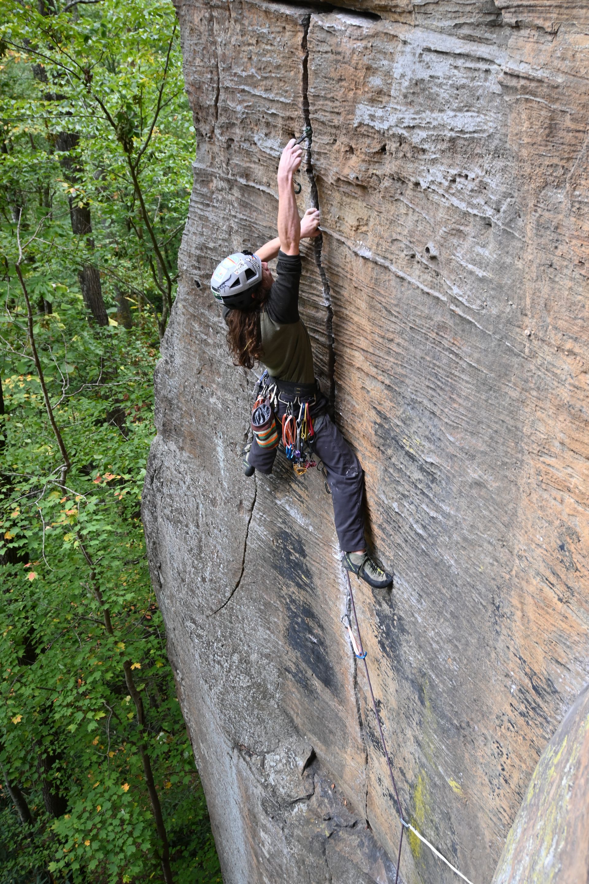 Hey! My name is Caleb Oackes. I grew up in the woods of Bellville, Ohio. Growing up I had a deep connection with nature. I learned to ski and hunt with my dad as a kid and still do! After I graduated high school I started working in a factory and felt so trapped, but climbing became my escape.